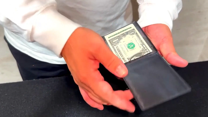 A dollar bill changes into bills of various countries. Coins or cards can be used in place of the changed bills. Example of use Put a $1 bill in the wallet, showing it well. Through the window, you see the $1 bill is firmly in your wallet. The next time you cast the spell, the $1 bill will change into a Japanese bill. You can move on to the next magic trick using the changed bill.